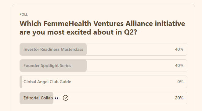 You voted and told me that Investor Readiness Masterclass and Founder Spotlight Series were your top areas of interest, followed closely by editorial collaborations. I am taking your feedback forward as we shape our Q2 25 initiatives😊 . More updates to come! Thank you for helping us build with intention.