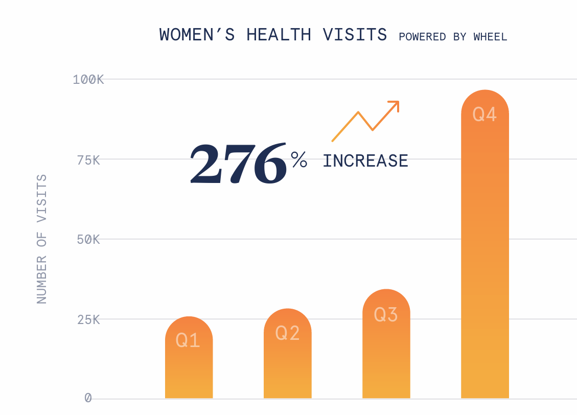 The power of the female economy is in full force. Women today are more educated, have greater economic power, and actively seeking solutions to improve their healthspan. Women drive 80% of healthcare spending, and they are willing to invest in their well-being. This shift is reflected in the surge in demand for women’s health services on platforms like Wheel’s virtual care network.